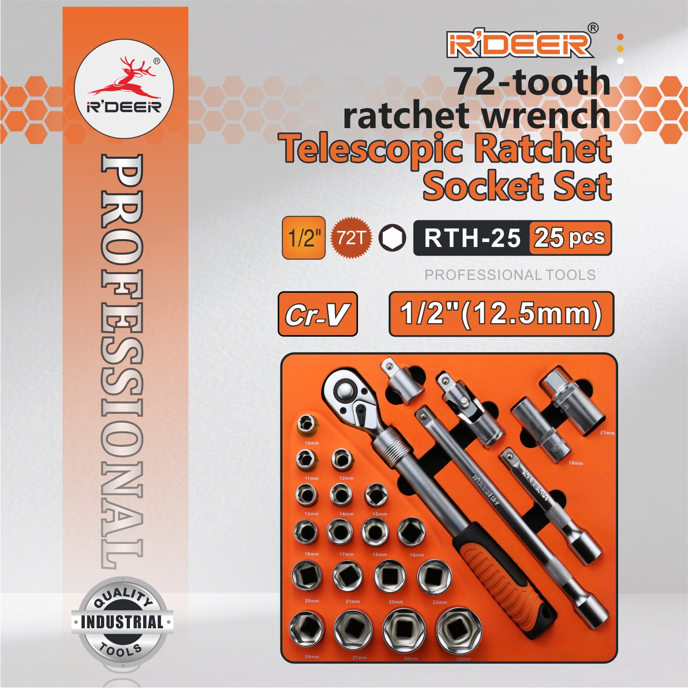 25-piece 12.5MM Telescopic Ratchet Socket Set